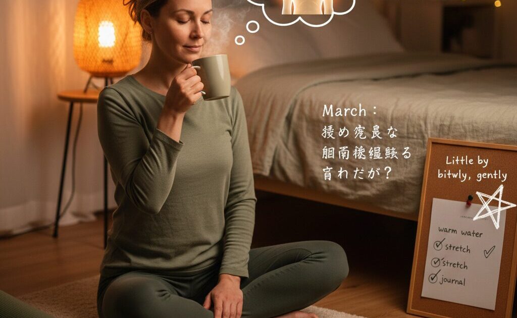 温めるって、別に特別なことじゃなくていい。私の場合は、夜ご飯のあとに白湯を飲むようにした。あとは寝る30分前に軽くストレッチ。首をゆっくり回すとか、足首をぐるぐる動かすとか、そんな程度。それだけでも体がじんわり温まってくる感覚がある。