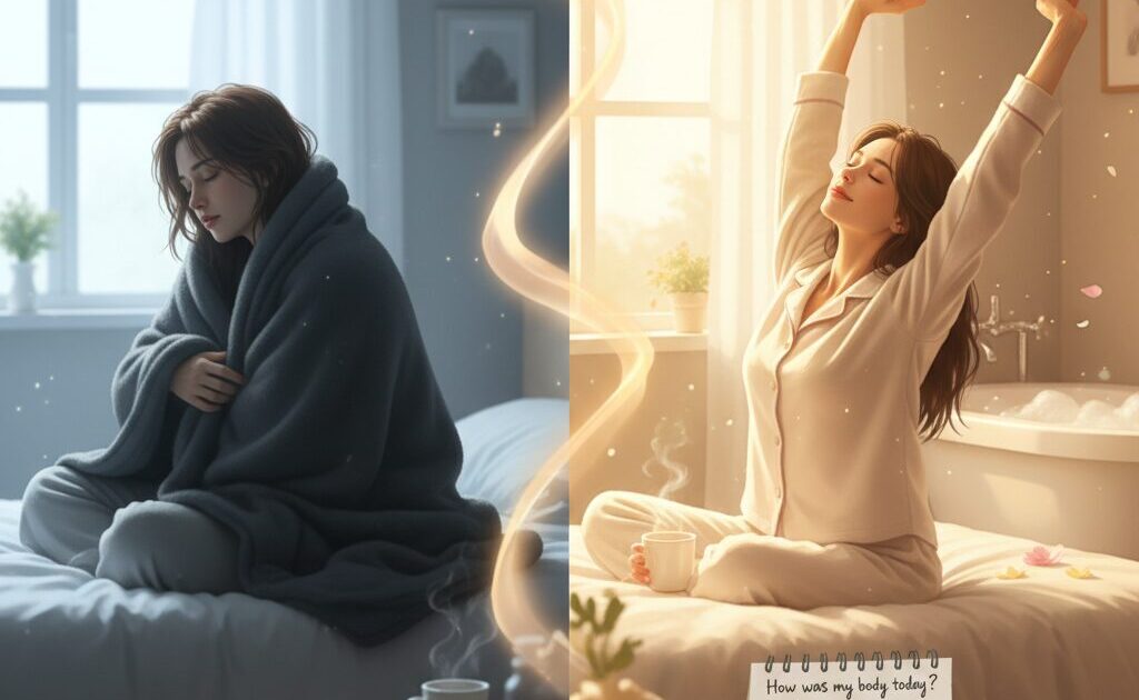 これ、最初は偶然かと思ってた。だけど2週間くらい続けてみたら、もう明らかで。冷えてる→眠りが浅い→朝だるいっていう、見事な連鎖。自律神経がうまく働いてないんだろうなって。体温調整がうまくいかないと、リラックスモードに入れないらしい。寝る前に靴下履いて寝たり、お風呂にちゃんと浸かった日は、朝までぐっすり。これがもう全然違う。