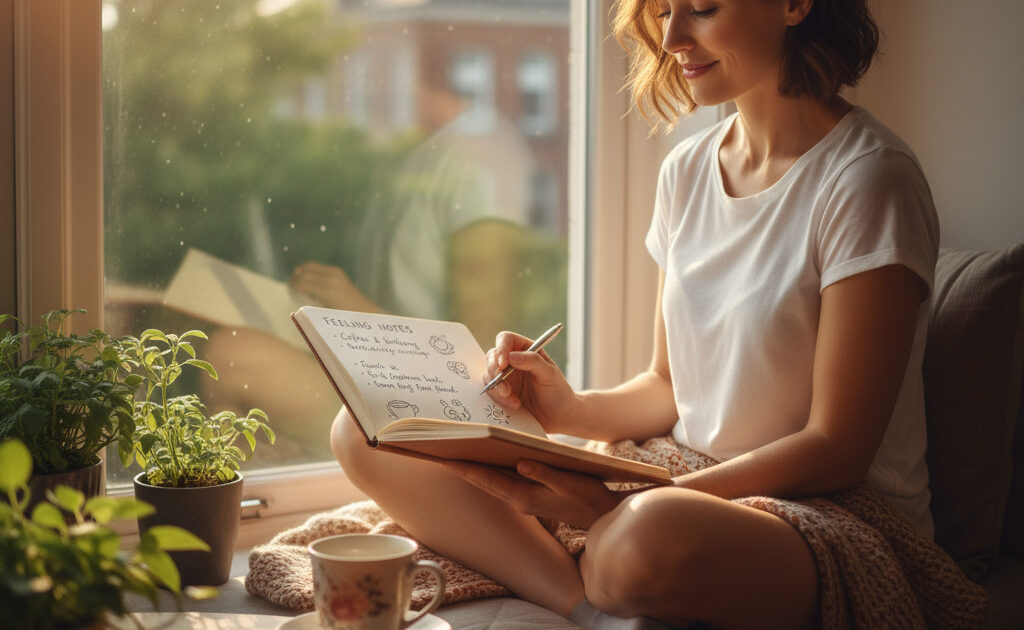 まず始めたのが「感じたことメモ」です。一日の中で心地よく感じたことや、ほっとした瞬間を書き留めていきます。例えば「今日の夕焼けがきれいだった」「同僚からの思いがけない言葉に励まされた」など。このメモを続けることで、日々の小さな幸せに気づけるようになり、心が穏やかになっていきました。