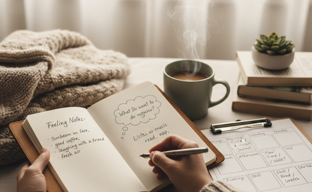 まず、私が大切にしているのは「感じたことメモ」です。スマートフォンのメモ帳でも、可愛い手帳でも構いません。その日に感じた心地よさや、ほっとした瞬間を書き留めています。例えば「今日の朝日が気持ちよかった」「お気に入りのハーブティーでリラックスできた」といった具合です。これを続けることで、日々の小さな幸せに気づきやすくなり、自然と心が温かくなっていくんです。
