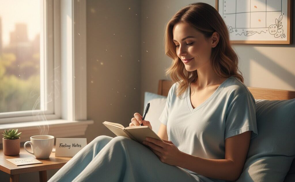 まず一つ目は「感じたことメモ」です。一日の終わりに、今日感じたことをほんの数行でいいので書き留めてみましょう。「今日のランチが美味しかった」「夕焼けがきれいだった」「同僚の笑顔に癒された」など、どんな小さなことでも構いません。このシンプルな行動が、実は自律神経を整える素晴らしい働きをしてくれるんです。
